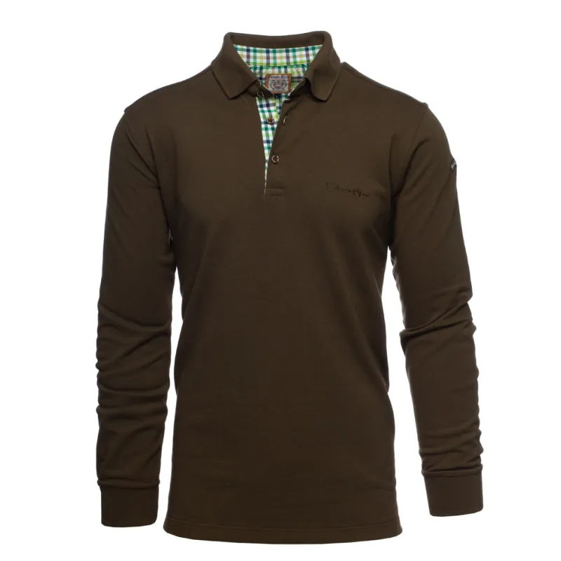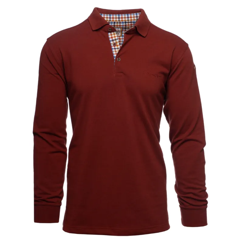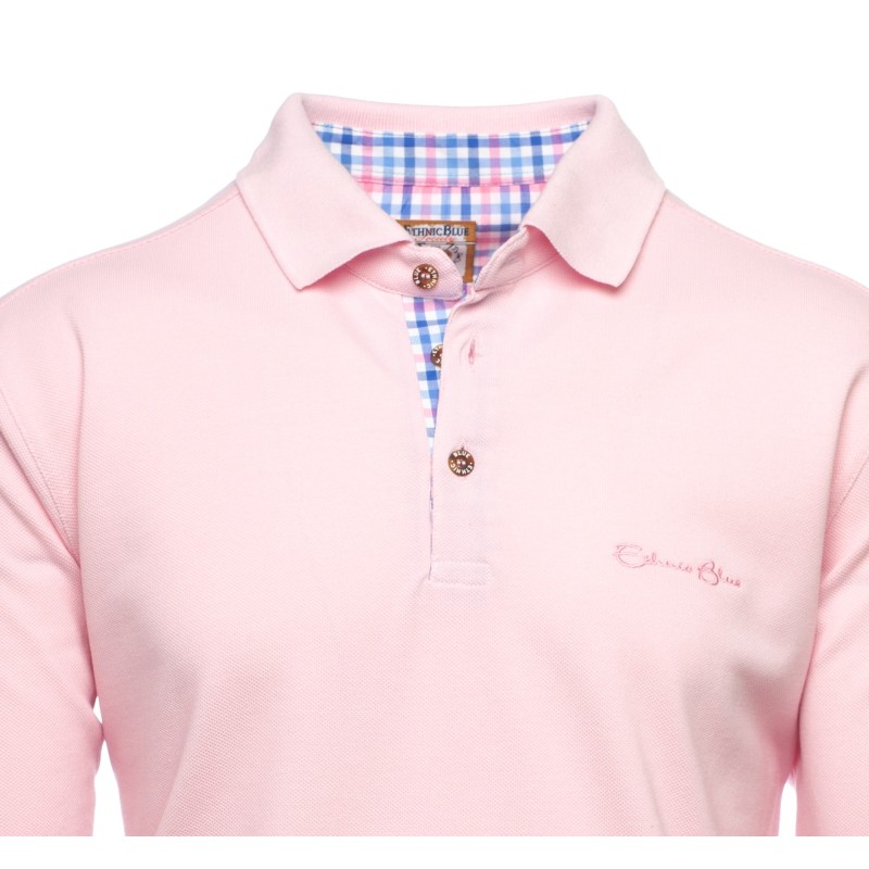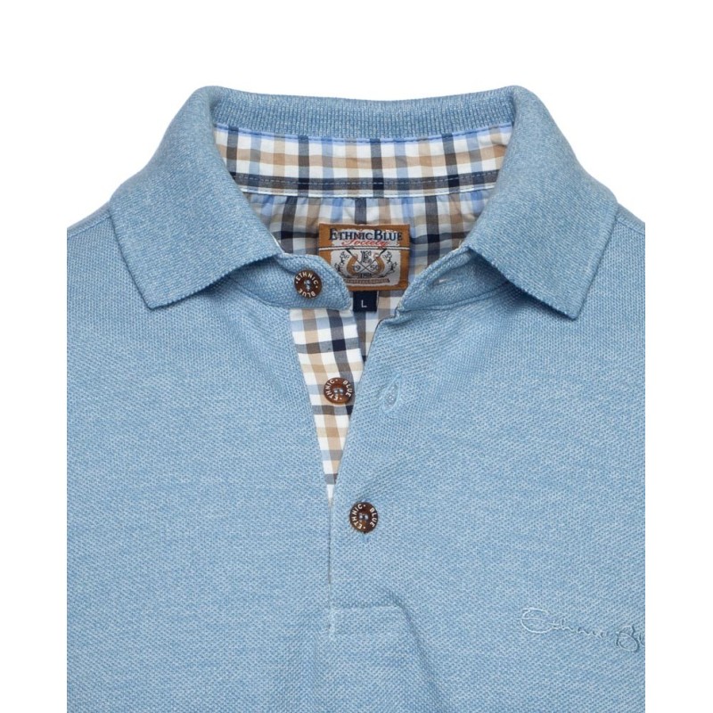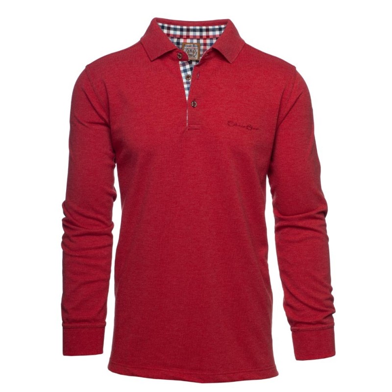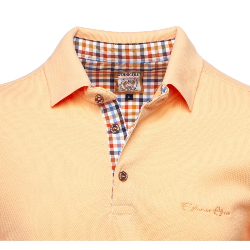 Discover our long-sleeve pique knit polo, designed to combine comfort and durability. Made from a blend of 50% cotton and 50% polyester, this bright beige polo offers exceptional breathability, ideal for any season. The placket is delicately enhanced with a coordinated check fabric, adding a distinctive touch of elegance. Perfect for those seeking style and comfort in their daily wear.