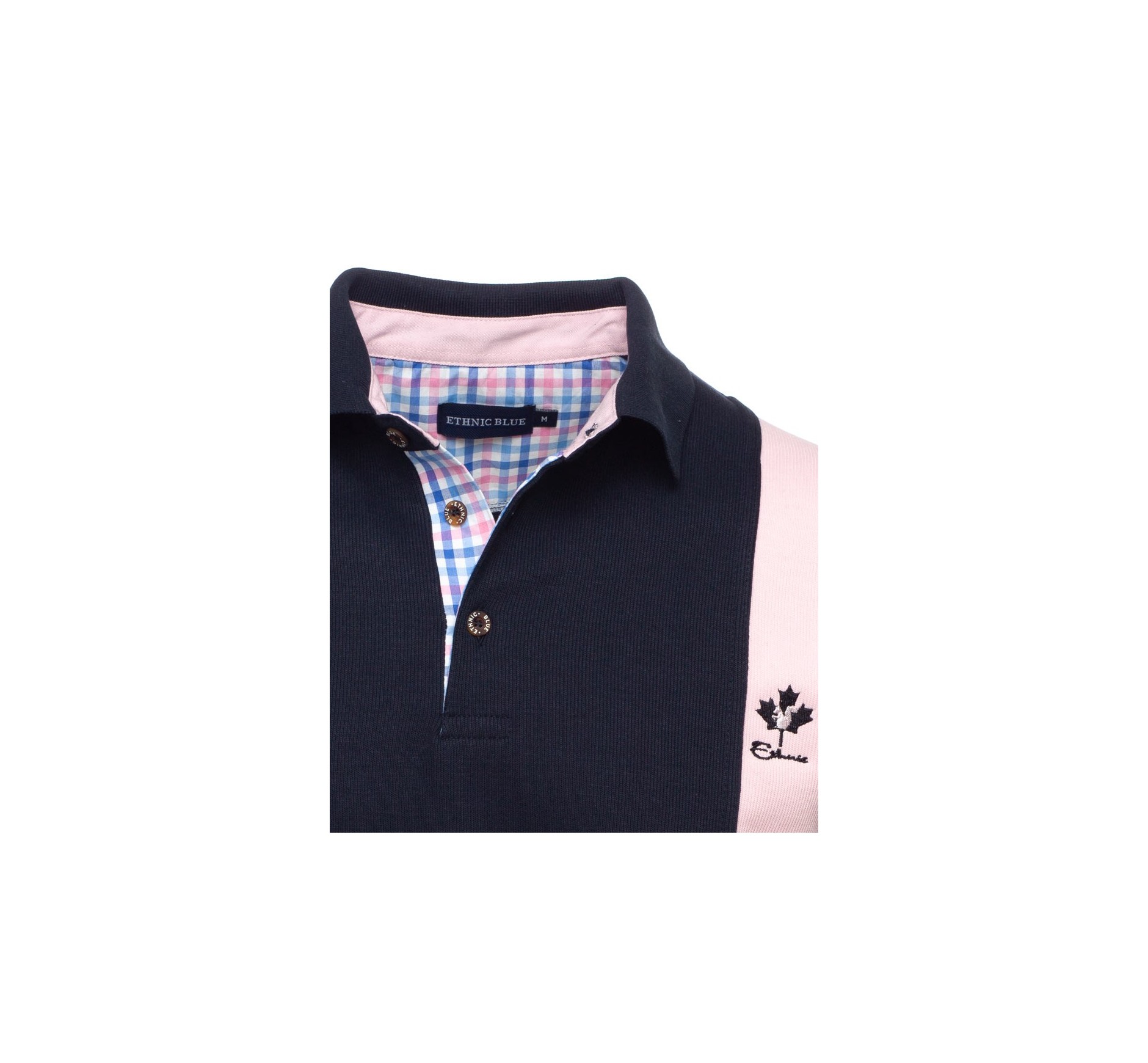 Elevate your everyday style with this long-sleeve polo featuring vertical stripes. Crafted from a brushed fleece knit (50% cotton, 50% polyester), it offers warmth and softness throughout the day. Its classic fit suits all body types, while the plaid fabric on the button placket adds a distinctive touch. Durable and easy to maintain, this polo is perfect for both casual and slightly more dressed-up occasions.