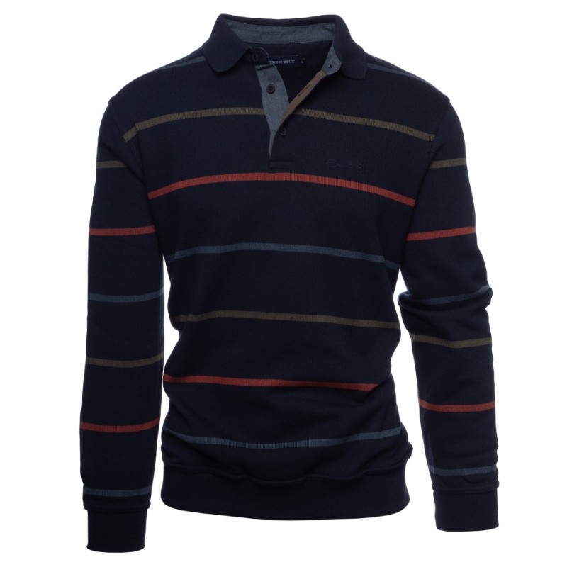 This striped polo shirt combines elegance and comfort in a timeless design. Crafted from a soft, brushed fancy knit fabric, it offers exceptional warmth and comfort. The fine stripes and contrasting denim collar add a touch of modern sophistication to this classic piece.