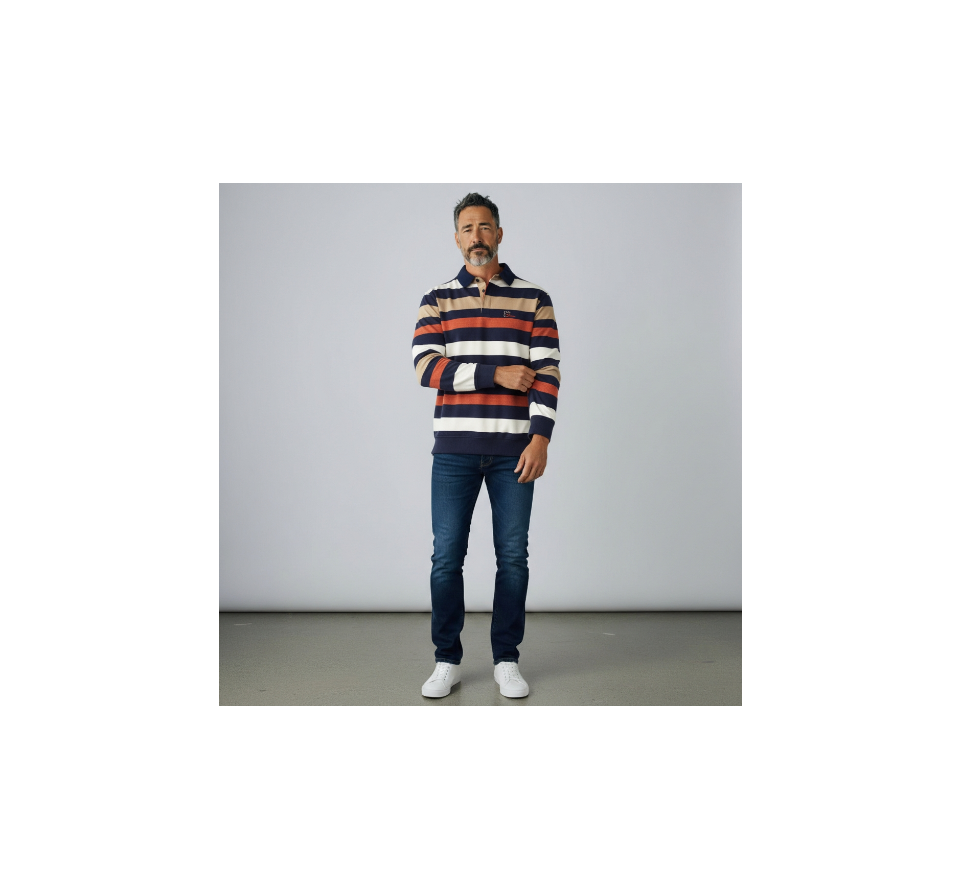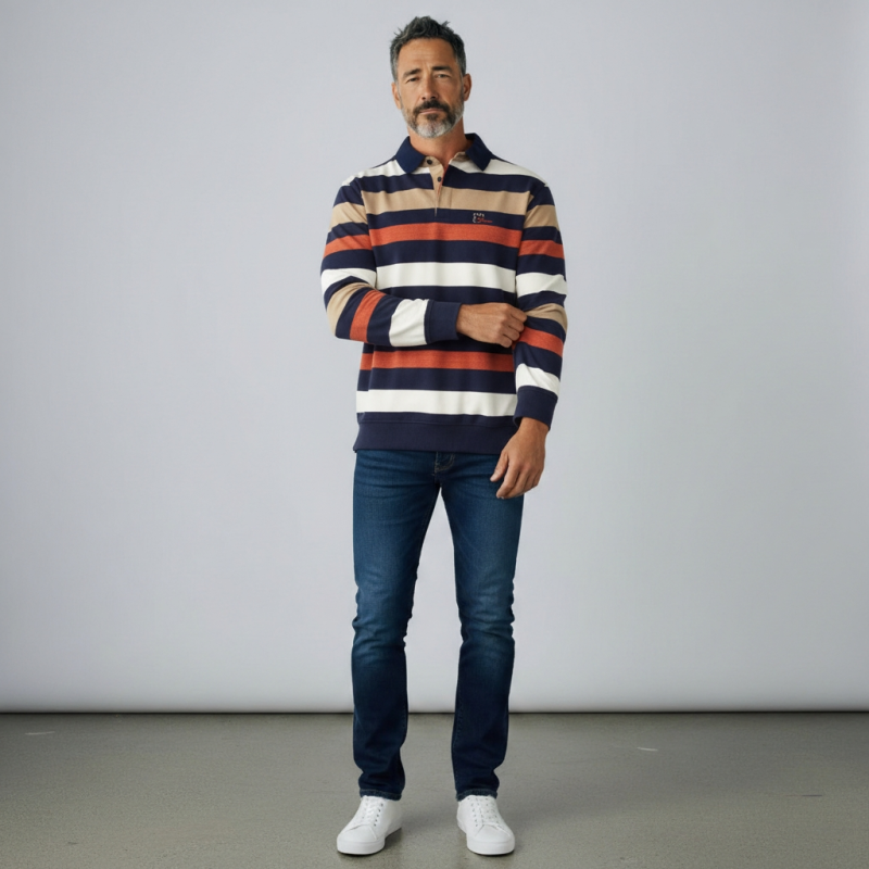 This men’s striped polo shirt combines timeless elegance with absolute comfort. Crafted from a premium knit composed of 50% cotton and 50% polyester, softly brushed inside, it offers a warm and pleasant feel. Its refined stripes and classic polo collar make it a versatile piece, perfect for both casual and elegant looks.