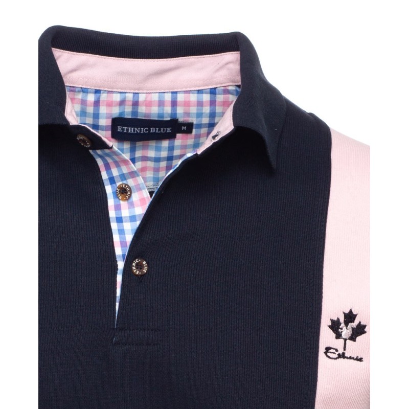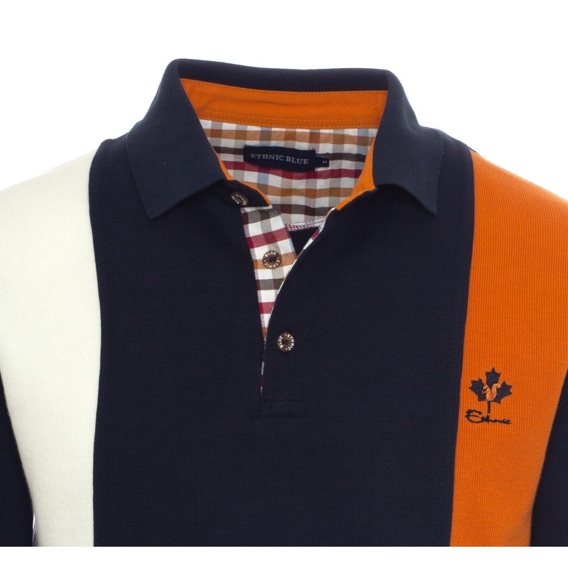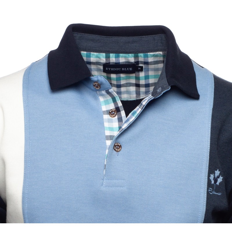 Elevate your everyday style with this long-sleeve polo featuring vertical stripes. Crafted from a brushed fleece knit (50% cotton, 50% polyester), it offers warmth and softness throughout the day. Its classic fit suits all body types, while the plaid fabric on the button placket adds a distinctive touch. Durable and easy to maintain, this polo is perfect for both casual and slightly more dressed-up occasions.