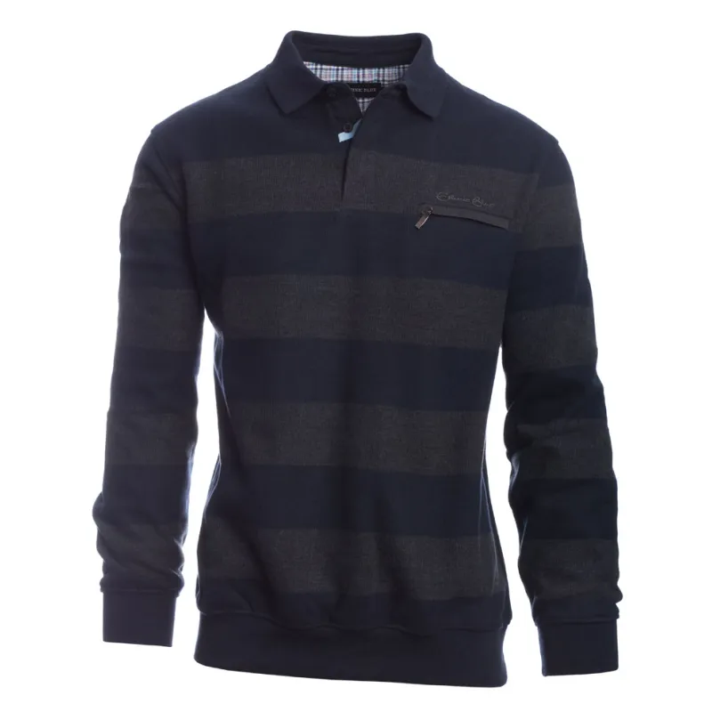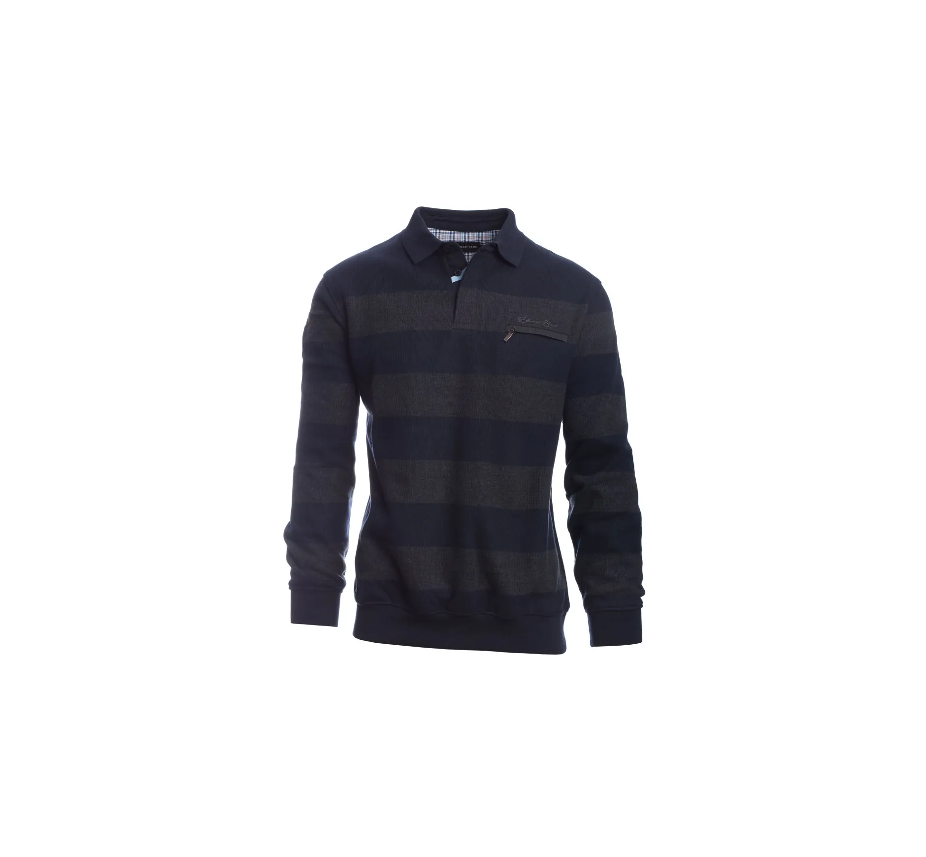 Long sleeve polo-shirt, pocket, / DARK GREY stripes
