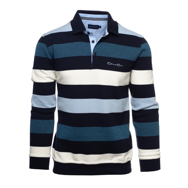 Striped Long-Sleeve Polo – Brushed Interior & Mid-Season Comfort