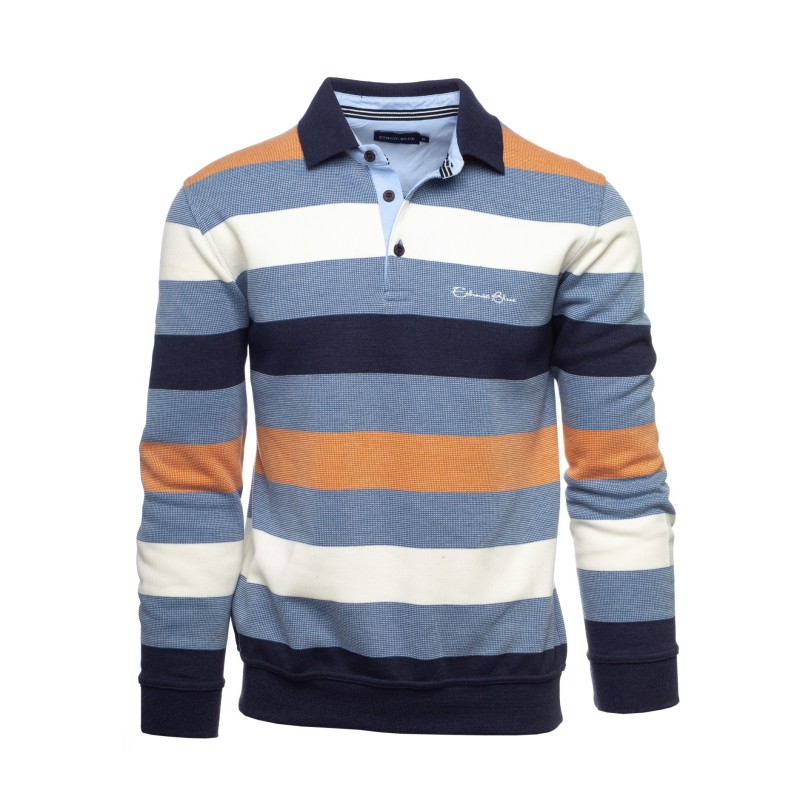 Choose a striped polo that combines style and comfort thanks to its brushed interior, offering gentle warmth ideal for mid-season. Crafted from a 50% cotton, 50% polyester blend and entirely made in Portugal, this piece ensures both quality craftsmanship and a versatile design. Its classic cut and modern stripe pattern make it a must-have for a casual-chic look.