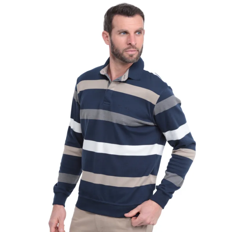 Elevate your style with our Exceptional Long-Sleeve Marine Polo Shirt. Skillfully crafted in Portugal, this premium garment effortlessly combines the sophistication of a shirt with the casual flair of a t-shirt. Perfect for the discerning gentleman.
