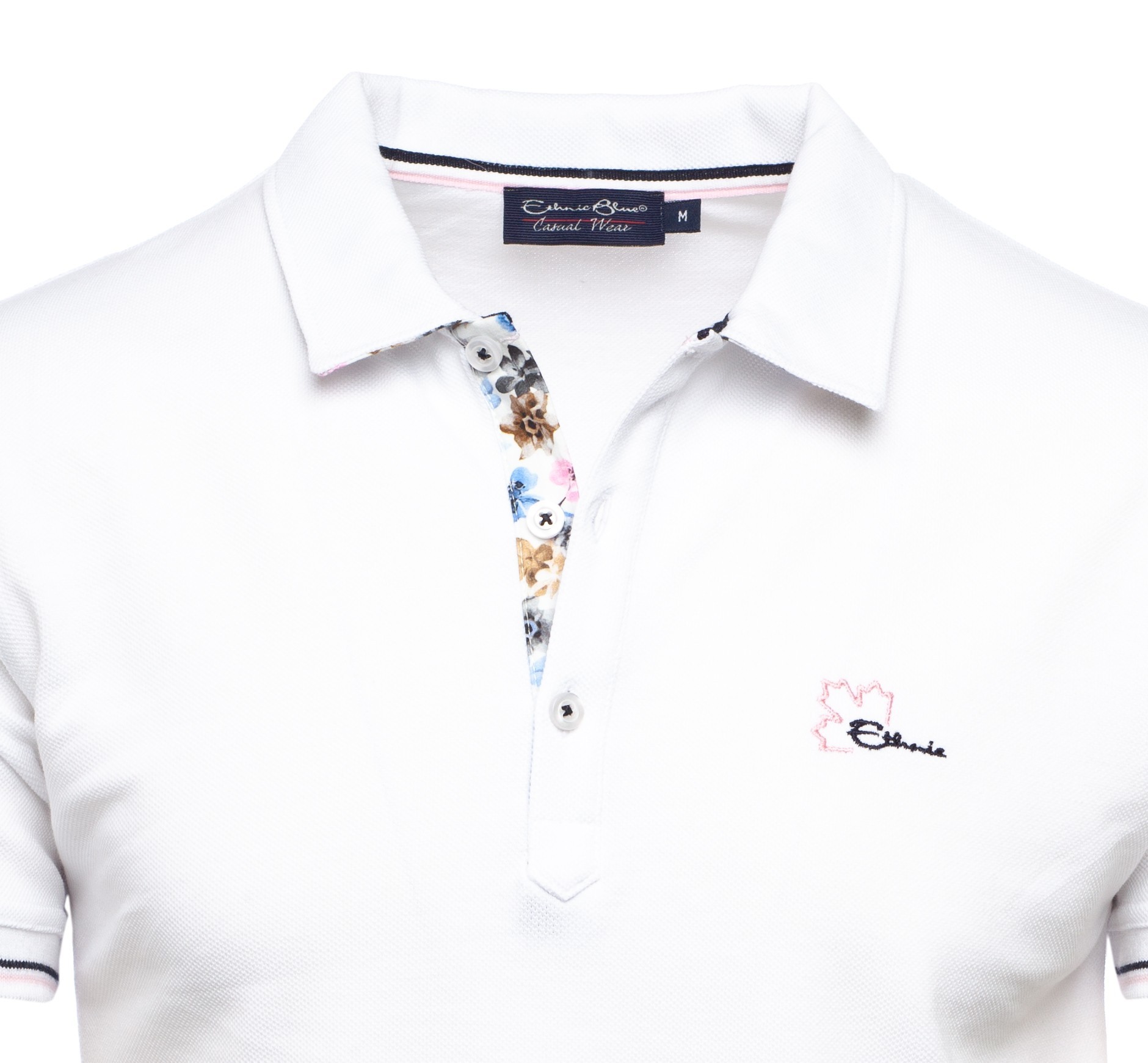 Men’s piqué knit polo with floral placket