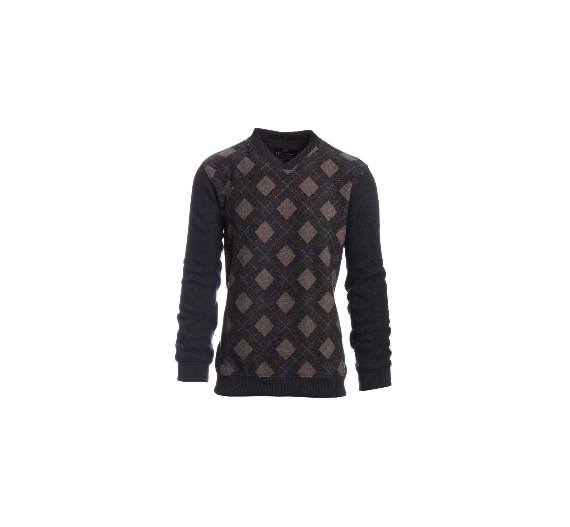 Men’s V-Neck Sweater with Anthracite/Beige Diamond Pattern – Everyday Elegance & Comfort