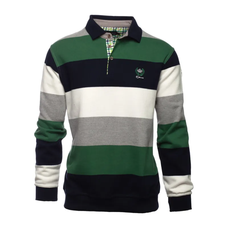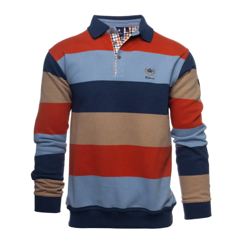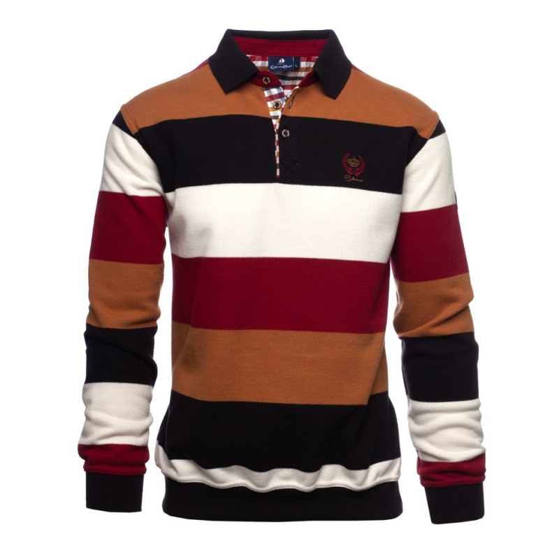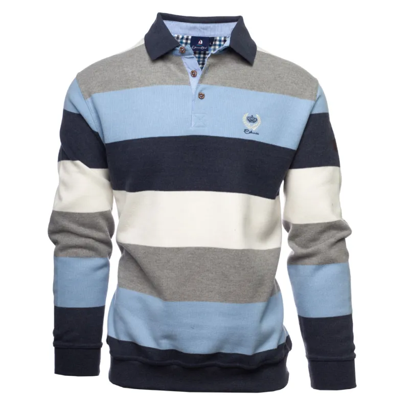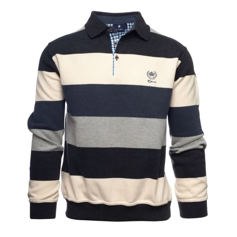 Material: 50% cotton, 50% polyester Ribbed cuffs on the sleeves and bottom for an elegant drape. Button placket with a discreet checkered fabric. Subtle embroidery on the chest. Available in a variety of colors.