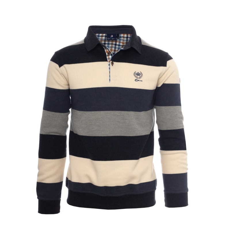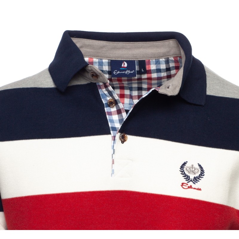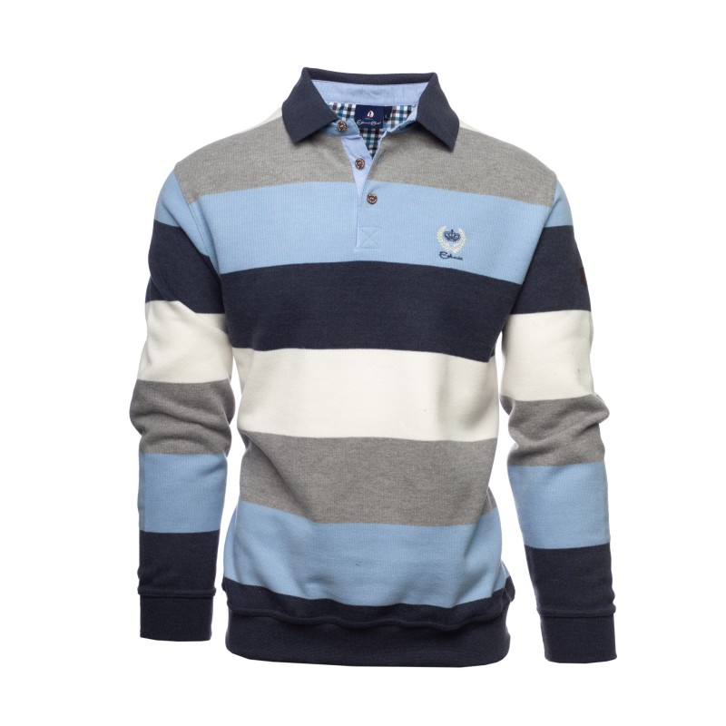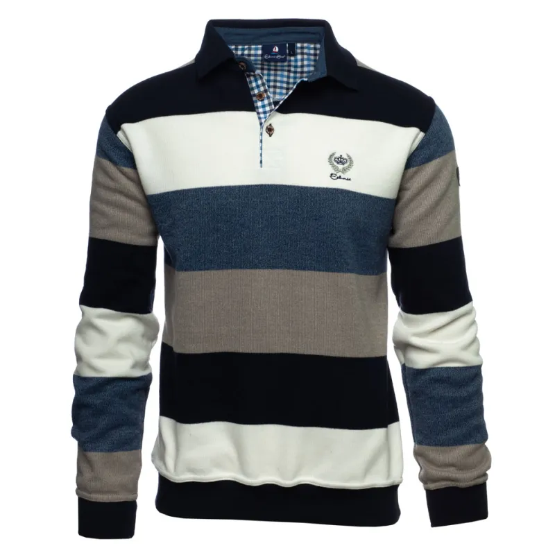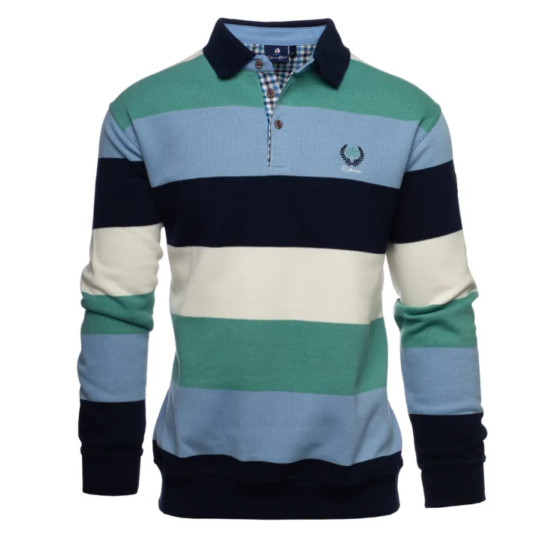 Material: 50% cotton, 50% polyester Ribbed cuffs on the sleeves and bottom for an elegant drape. Button placket with a discreet checkered fabric. Subtle embroidery on the chest. Available in a variety of colors.