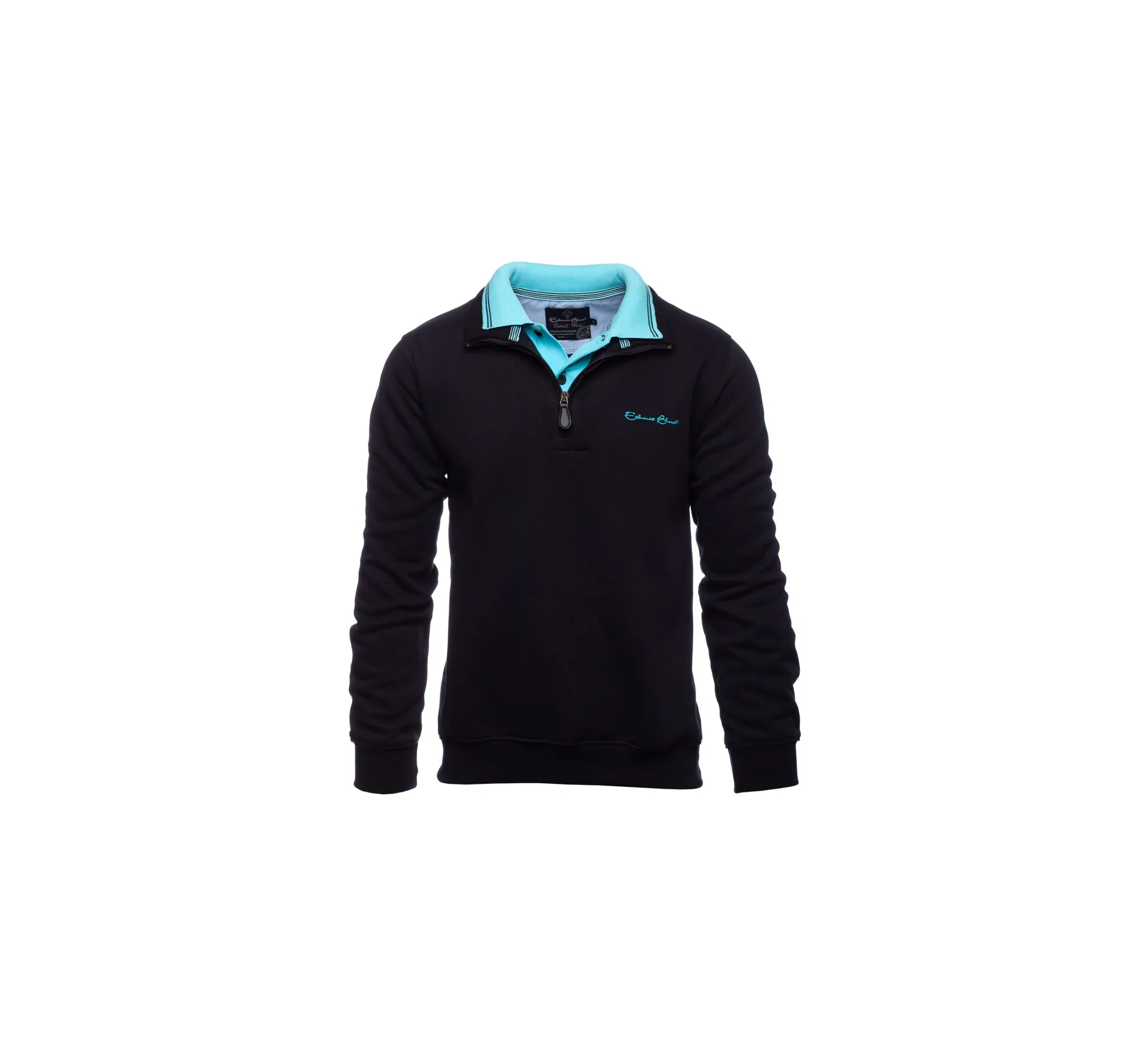 This zip-collar sweatshirt with an integrated polo collar combines the comfort of a trucker-style sweatshirt with the elegance of a piqué polo. Its unique design blends a classic fit with refined details for a casual yet sophisticated look. Crafted from soft fleece, it ensures excellent durability while providing a comfortable feel. Entirely made in Portugal, it reflects the high-quality craftsmanship of Ethnic Blue.