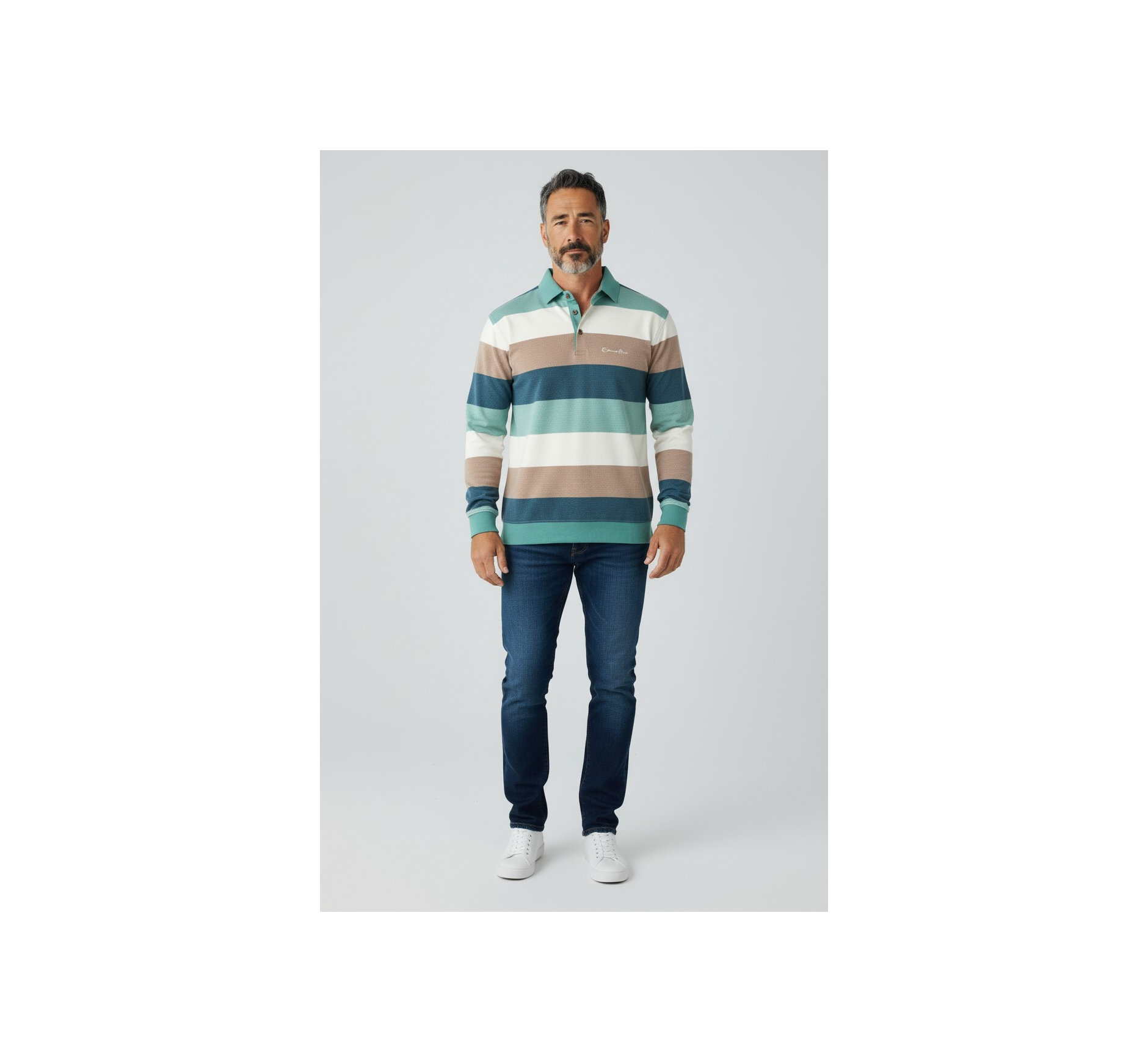Polo Manches Longues Rayé – Maille Grattée Légère, Fabriqué au Portugal
