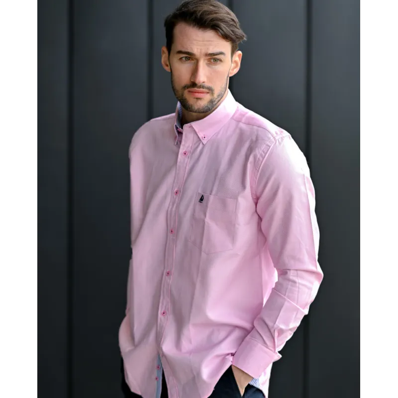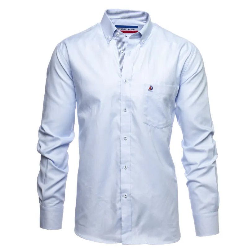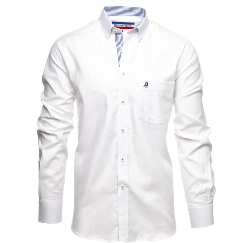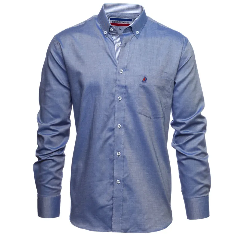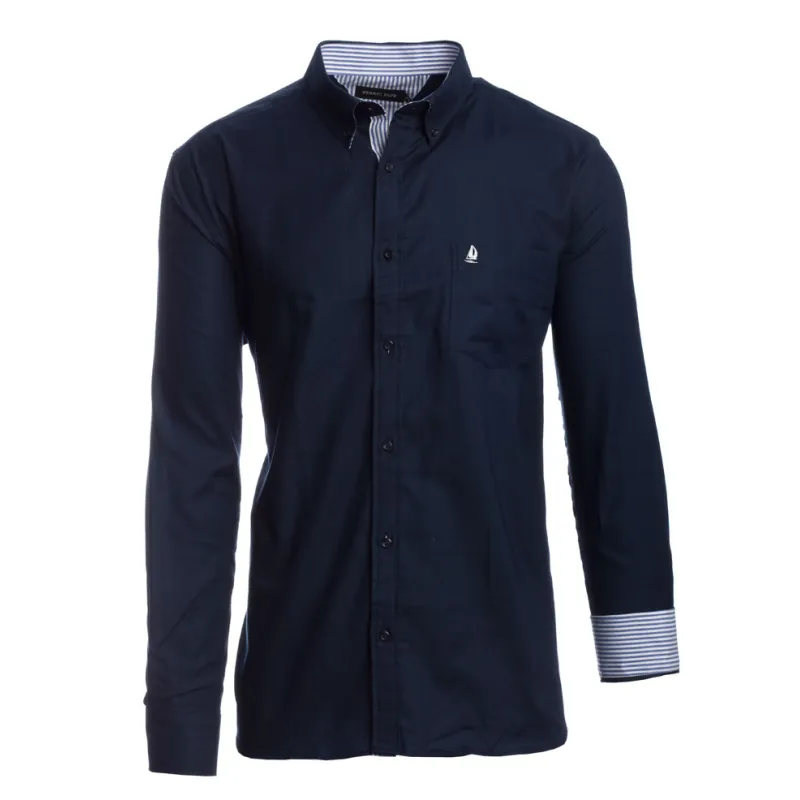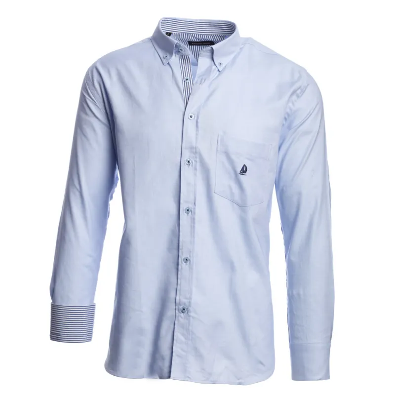 Pièce incontournable du vestiaire masculin, cette chemise oxford vous séduira par ses petits détails discrets. En effet, le col intérieur est en tissu bleu rayé, ainsi que la patte de boutonnage et le revers des poignets. On aime la petite broderie "bateau à voile" contrastée.