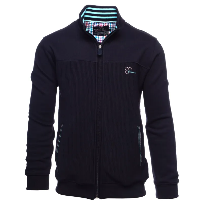 Cette jolie veste est confortable et stylée, vous ne pourrez plus vous en passer ! Vous allez aimer le mélange des deux matières : la première en maille ottoman verticale et la seconde sur les manches, le dos et l'empiècement devant en maille style sweat marine. Les rayures à l'intérieur du col et sur les poches lui confère un style très élégant.