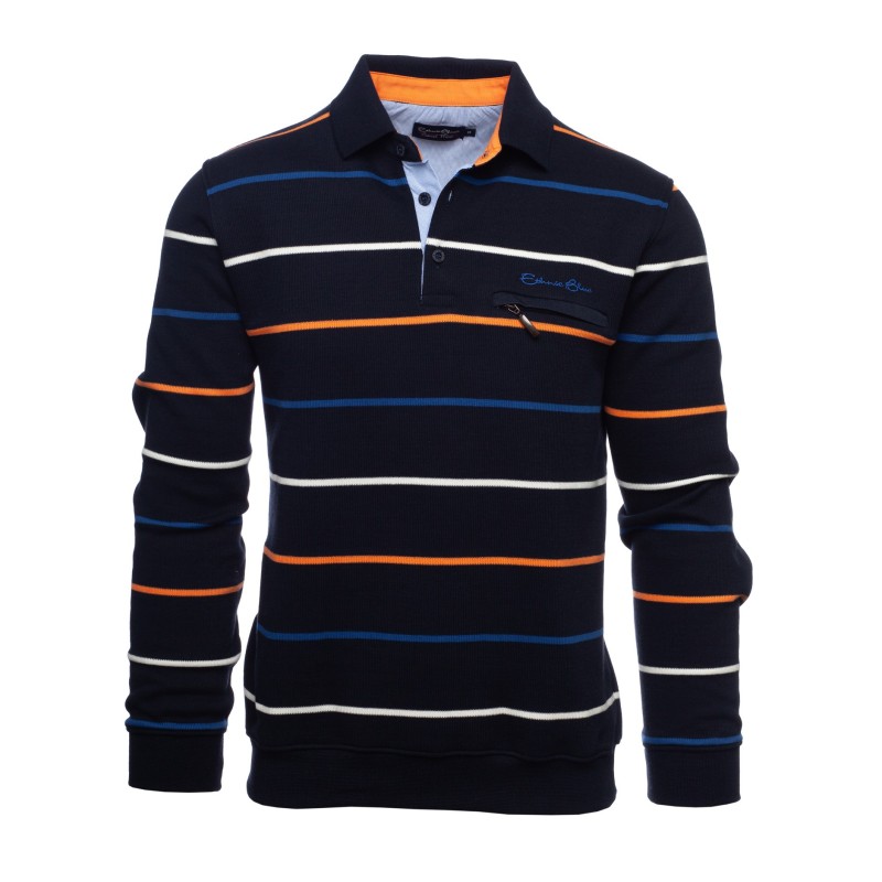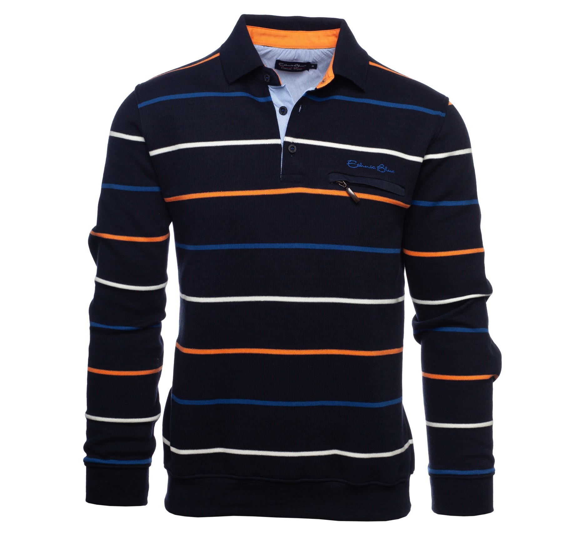 Polo manches longues rayé avec poche zippée – Confort & chaleur – Fabriqué au Portugal