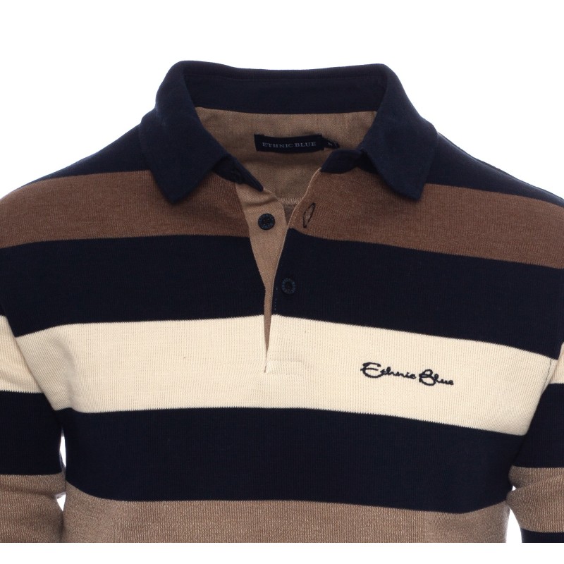Découvrez l'équilibre parfait entre distinction et bien-être avec notre polo rayé pour homme à manches longues. Conçu pour affronter les saisons fraîches avec style, ce modèle arbore un jeu de rayures horizontales harmonieuses aux tons marine, marron, écru et sable. Sa coupe confortable et sa maille de qualité supérieure en font une pièce maîtresse du vestiaire masculin, idéale pour un look décontracté-chic au quotidien.